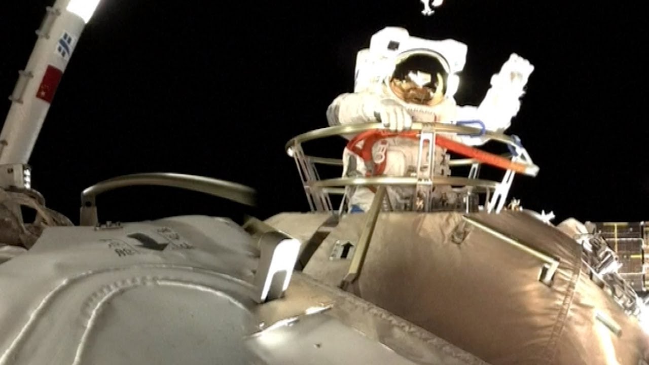 La televisora estatal mostró imágenes de Liu Boming y Tang Hongbo saliendo de la escotilla con la Tierra al fondo. El tercer miembro, el comandante Nie Haisheng, se quedó dentro.