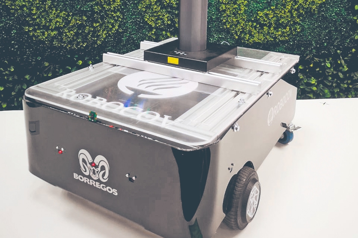 El robot elimina el virus en espacios como salones, centros comerciales, escuelas y medios de transporte.
