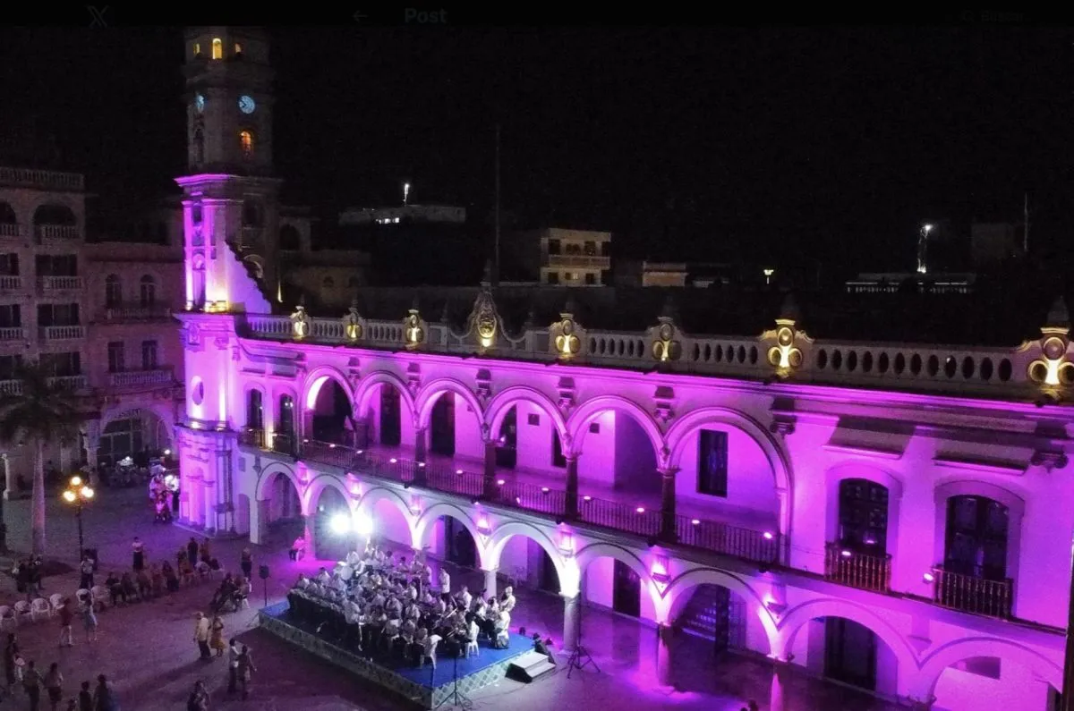 Como parte de las acciones simbólicas y de concientización por el Mes de Sensibilización sobre el Cáncer de Mama, Patricia Lobeira Rodríguez iluminó de rosa el Palacio Municipal de Veracruz.